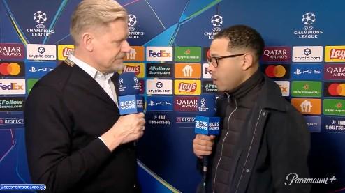 欧冠1/8决赛首回合,切尔西客场2-5输给巴黎,罗塞尼尔赛后接受了CBS体育的采访。